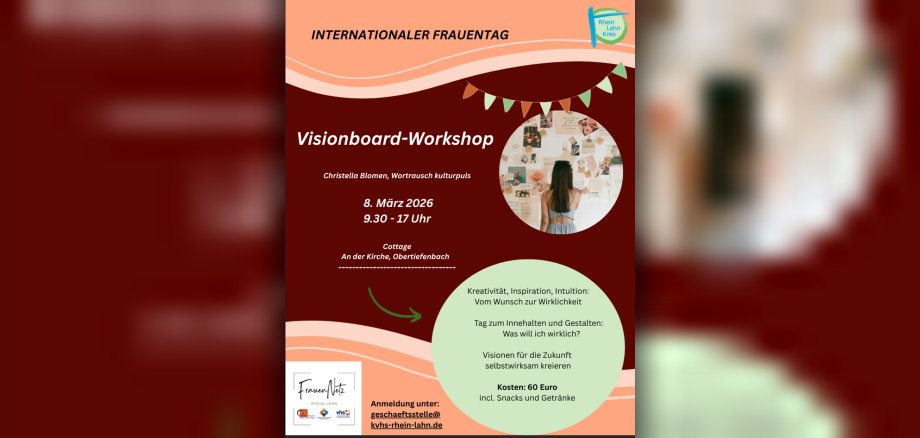 Nr. 44 – 4. Februar 2026 / Rhein-Lahn-Kreis. Anlässlich des Internationalen Frauentages lädt das „FrauenNetz des Rhein-Lahn-Kreises“ zu einem besonderen Angebot ein: Einem Tag der Kreativität, Intuition und Inspiration in der gemütlichen Atmosphäre des kleinen „Cottage“ in Obertiefenbach. Termin ist Sonntag, 8. März von 9.30 bis 17 Uhr. Vom Wunsch zur Wirklichkeit: Viele Frauen stehen heute vor der Herausforderung, Familie, Beruf, persönliche Entwicklung und gesellschaftliches Engagement zu vereinen. Neben Selbstbestimmung, Gleichberechtigung, Achtsamkeit und persönlicher Entfaltung geht es in ihrem Leben auch um berufliche oder materielle Ziele, um innere Balance, Lebensfreude und den Mut, neue Wege zu gehen.