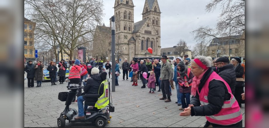 Ein großer Dank gilt diesen zahlreichen Teilnehmenden der Tanzdemonstration. Das Aktionsbündnis bedankt sich außerdem ausdrücklich für die Unterstützung des Frauencafés im JUKZ, die eigens für die Demo pinkfarbene Armbinden genäht hatten, bei der Anwaltskanzlei Wehran‑Itschert und dem Zonta-Club Koblenz für die finanzielle Unterstützung dieser Aktion, dem Haus Metternich für die gute Zusammenarbeit, bei der „Küche für Alle“ für die Verpflegung auf dem Münzplatz, bei „NDS 23 Koblenz“ für die kostenlose Bereitstellung der Musikanlage sowie dem ehrenamtlichen Awareness-Team mit Vicy, das für ein achtsames Miteinander sorgte.