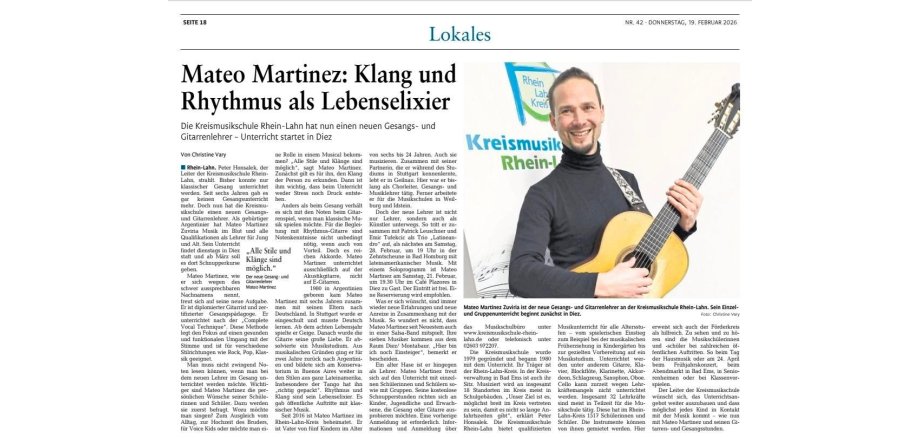 Neuer Gesangs und Gitarrenlehrer in Diez: Mateo Martinez Zuviria